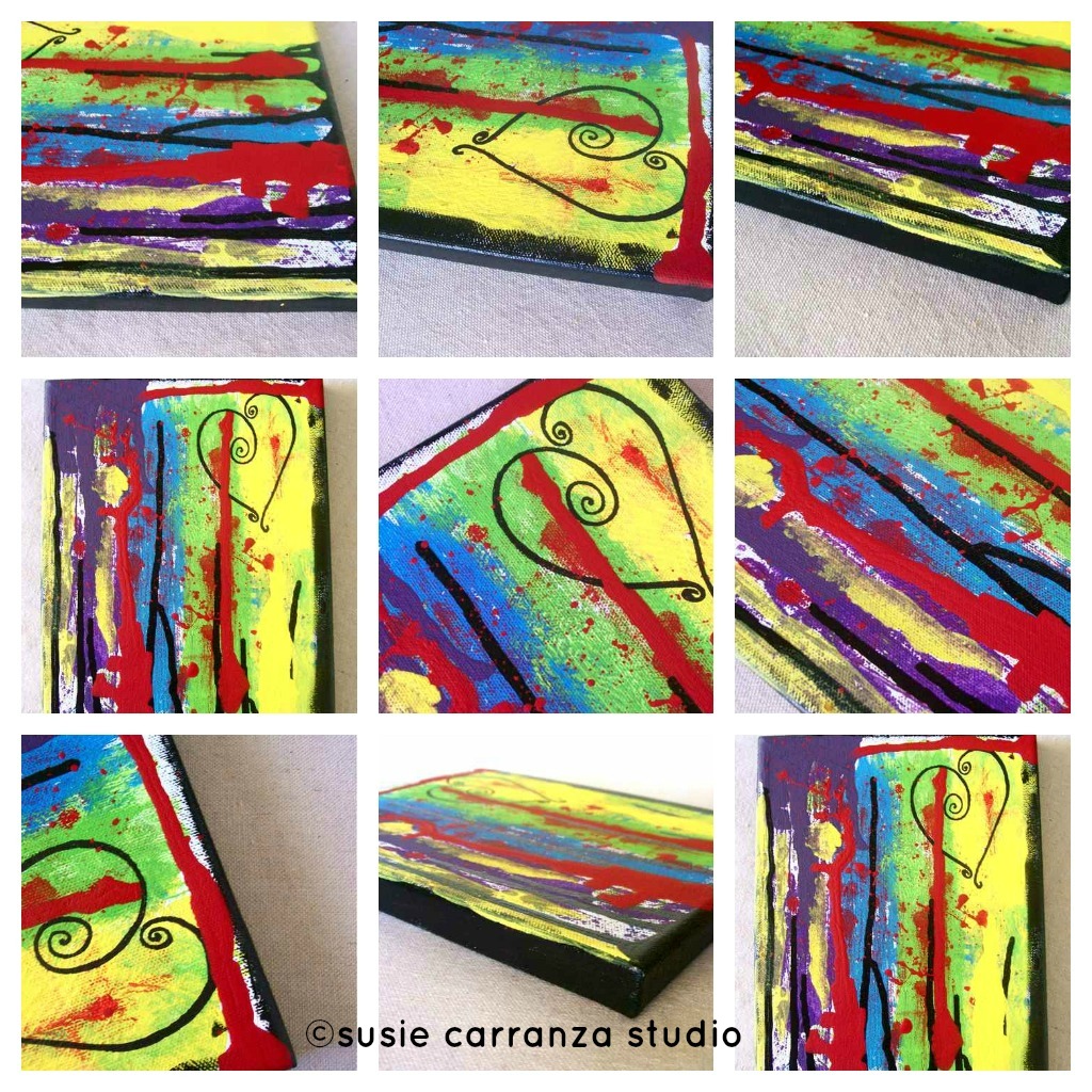 not this week.  this week i painted.  happily and without guilt.  i finished work left neglected, i found canvases, partially prepped and painted, and created new work.  i painted with no thought to results.  i just enjoyed playing with paint:  brushing, dripping, splattering, mixing.  messy and fun!