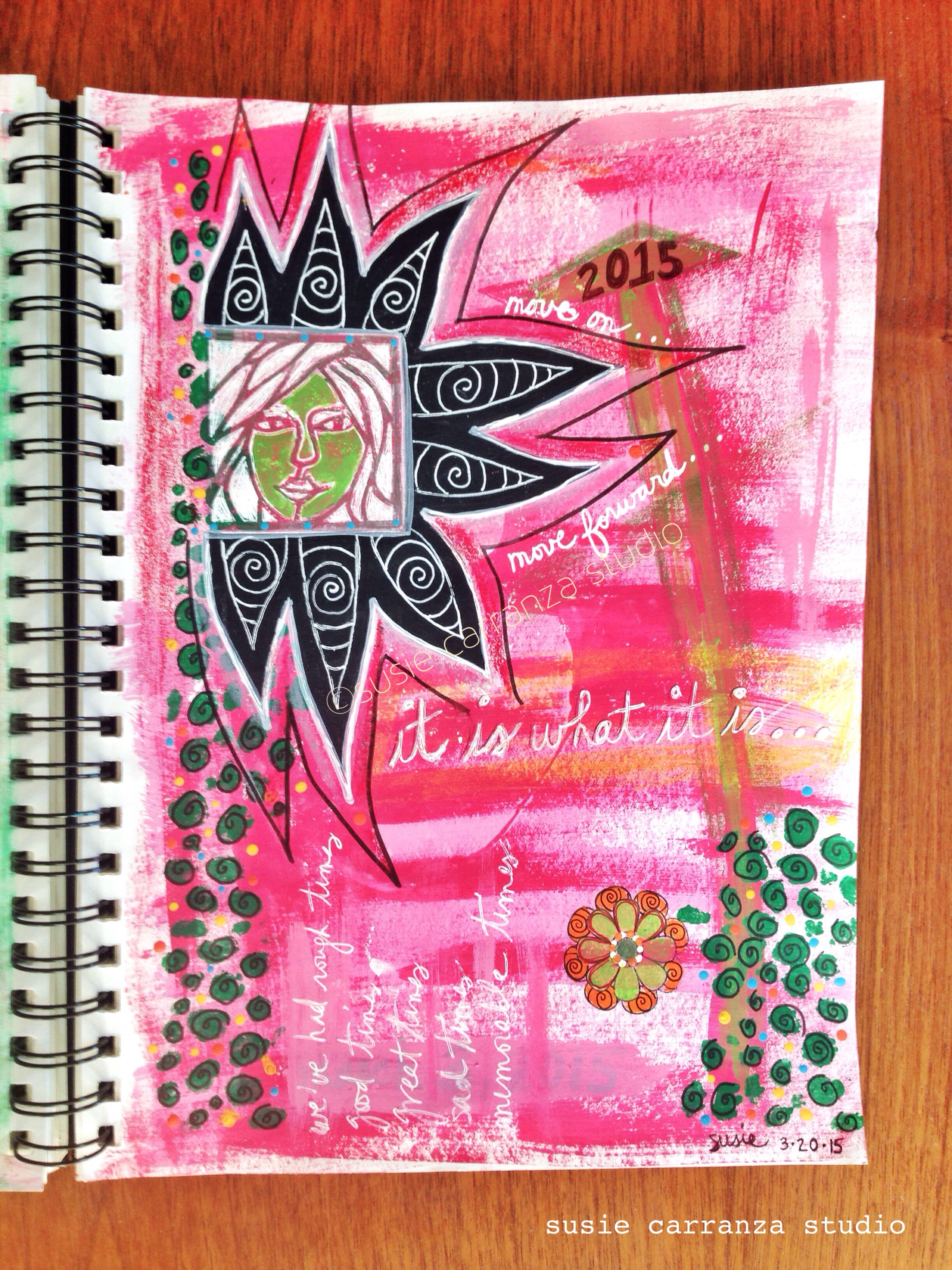 Last week I shared the beginning of my newest art journal pages. Thought you might like to see the finished pages…