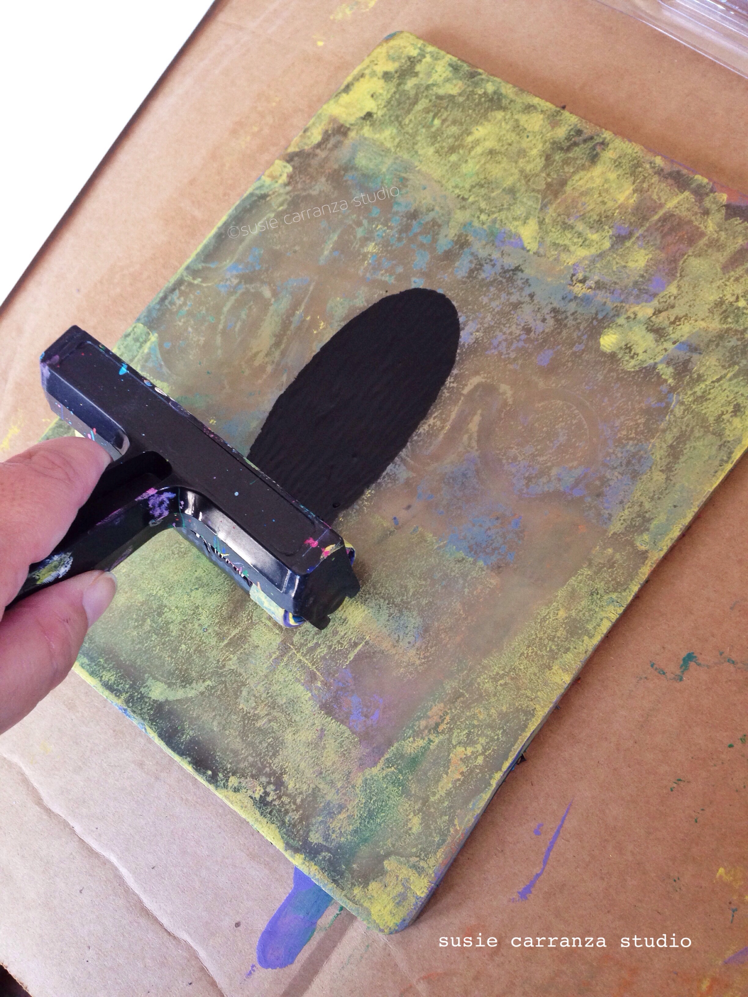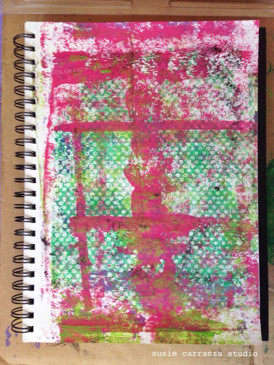 gelli print done with wavy roller - susie carranza studio