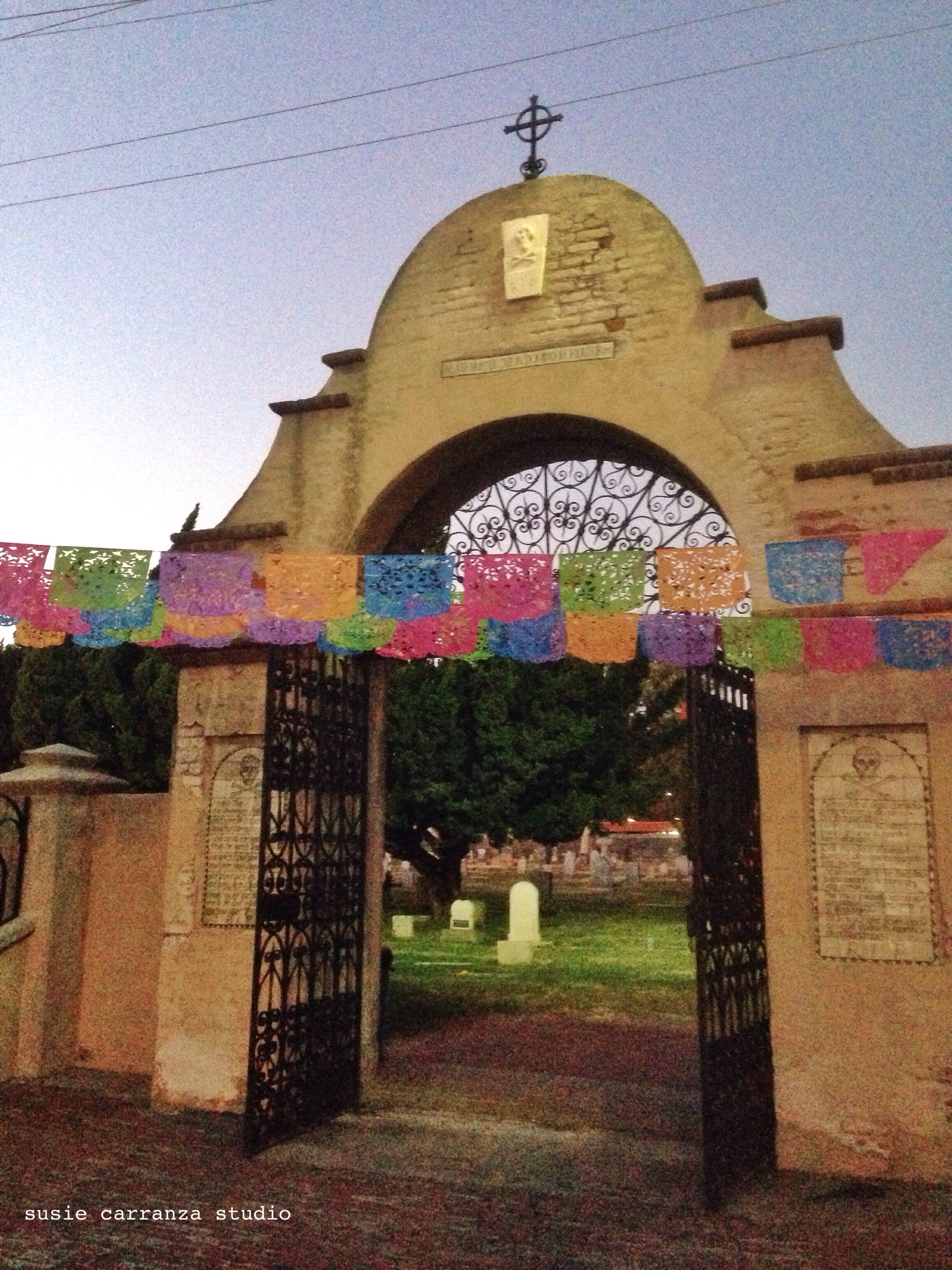 Papel picado at San Gabriel Mission Cemetery - susie carranza studio