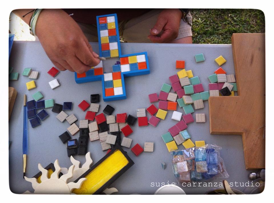 it was a good day. it was a beautiful day to be outside, i got lots of gelli prints ready for future pieces, lawrence created two beautiful mosaic crosses – all in all, a good day.