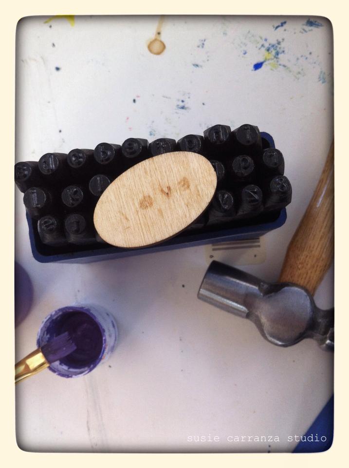 i tried out my set of alphabet metal stamping set on a piece of wood, just to see how it looked –