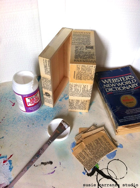 this 1987 Webster’s dictionary has been with me for years (obviously – 1987!). i love to write, and during my college years and several years after that, i wrote short stories and poetry. this dictionary helped me out, so i thought it would be cool to repurpose and upcycle it into my present-time creative work…